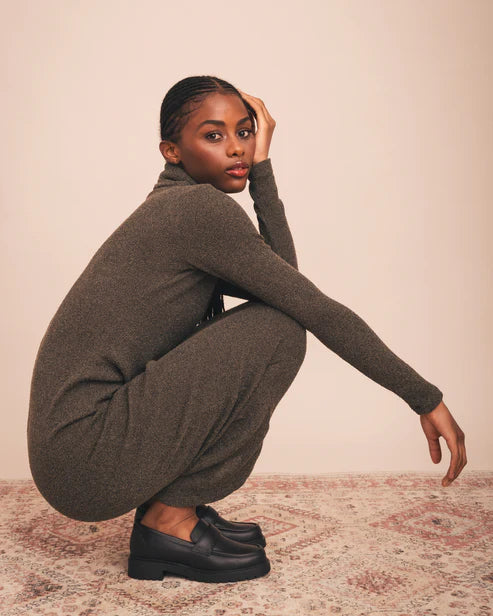 Alessia é um mocassim vegan feminino com sola chunky moderna, feito com OnLeather (25 % reciclado). Forro OnSteam e sola de borracha. Produzido em Portugal.