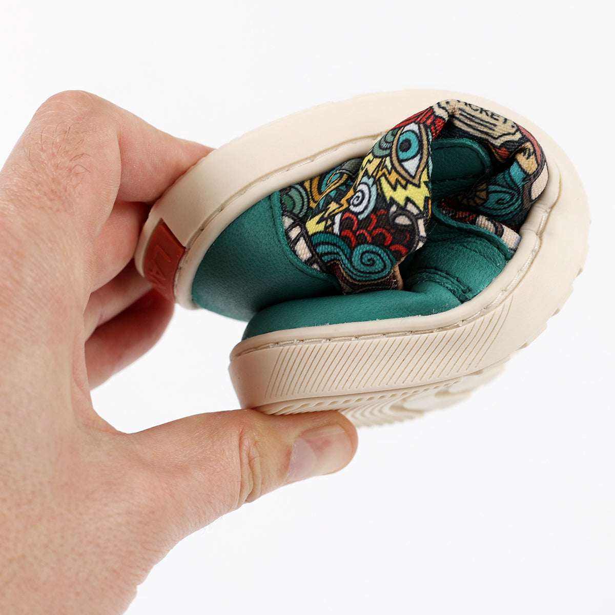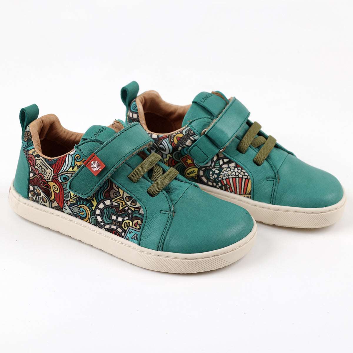 Cheerful and fun barefoot sneakers that combine a colorful pattern with scratch-resistant leather and promote a healthier development of children's feet.