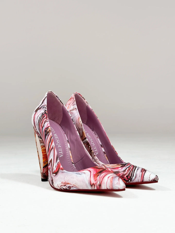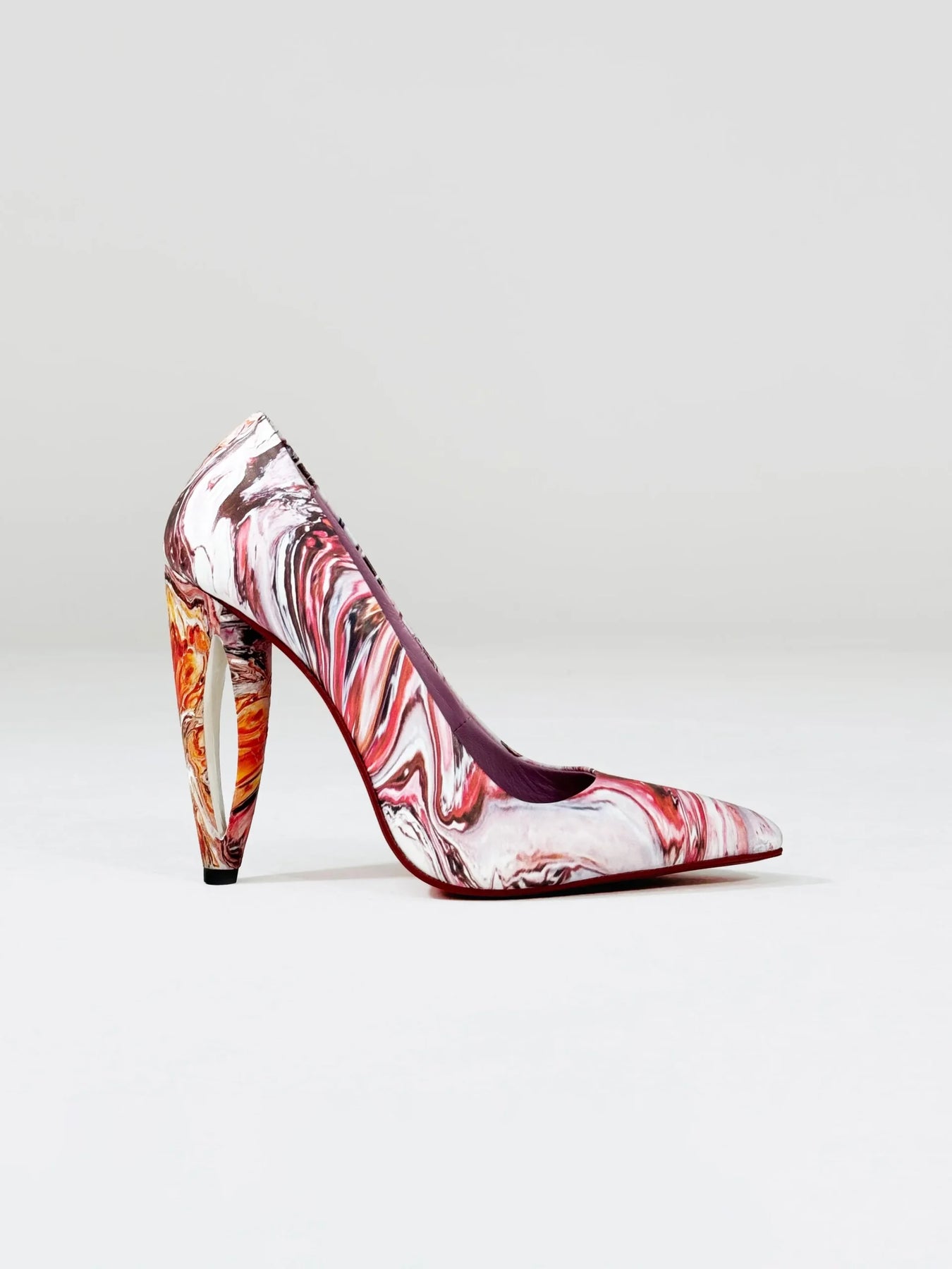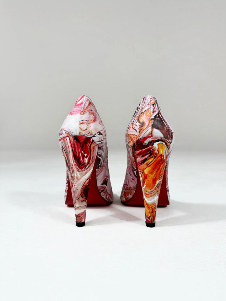 Perfectos para la mujer elegante y atrevida, estos zapatos en tonos rojos y blancos tienen un tacón de 11,5 cm. Están fabricadas en piel de alta calidad y el tacón está recubierto con el mismo dibujo que el zapato.